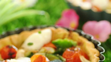 Tarte fine Tablier Blanc aux légumes d’Été, effeuillé de morue