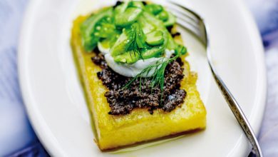 Polenta croustillante, herbes aromatiques et concassé d’olives noires