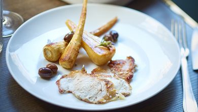 Gigot d’agneau cuit en croûte de sel Le Guérandais, panais rôtis et olives noires