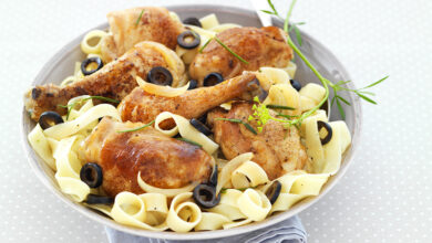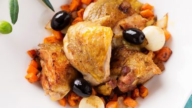 Poulet à la moutarde, aux olives noires et herbes de Provence
