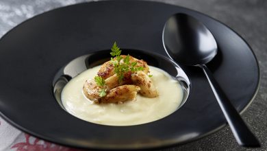 Blanquette de cuisses de grenouilles à la poudre d’orange et sabayon de Ratte du Touquet
