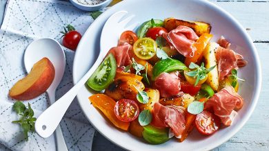 Salade de pêches rôties et jambon Serrano