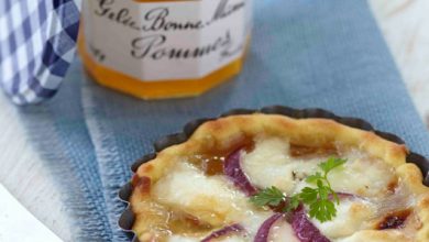 Tarte au Pélardon, oignons rouges et gelée de pommes