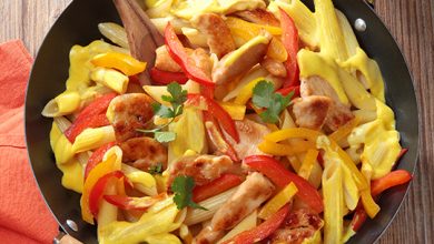 Penne au poulet et lait de coco Moutarde douce aux épices