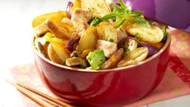 Wok de Ratte du Touquet et poulet aux petits légumes