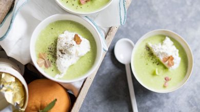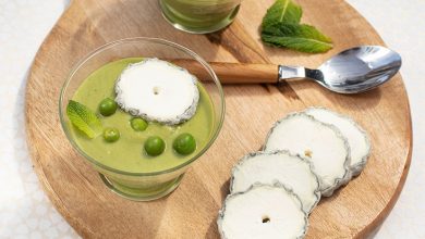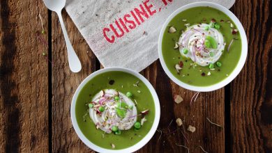 Soupe glacée de petits pois menthe au Sainte-Maure-de-Touraine AOP
