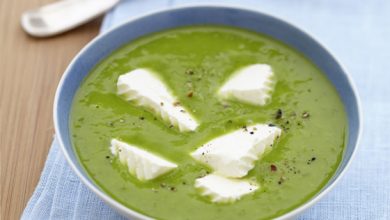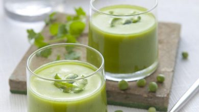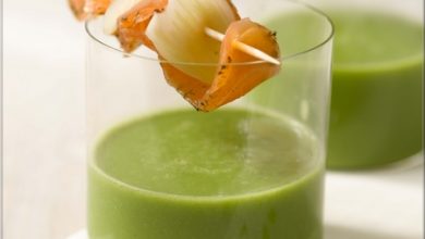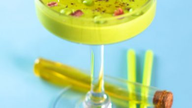 Velouté froid de petits pois à la menthe et au Caprice des Anges