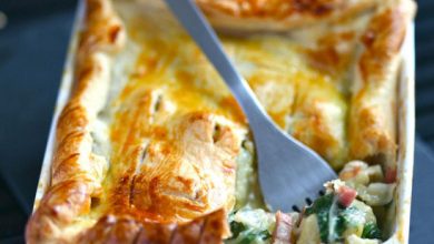 Tourte aux épinards, au lard et aux pommes de terre au Camembert de Normandie