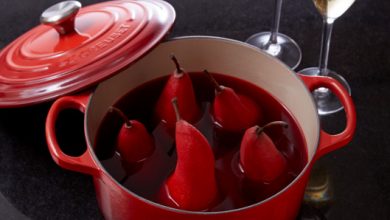 Poires au Gingembre Enivrées de Vin Rouge