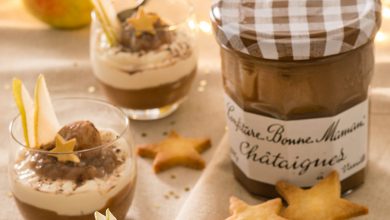 Verrines de mousse aux poires et Confiture de Châtaignes Bonne Maman®