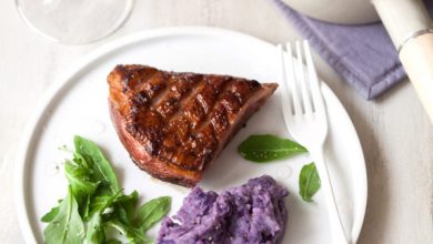 Magret de canard, caramélisé au confit de violette