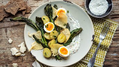 Salade de pommes de terre nouvelles, œufs durs et parmesan grillé