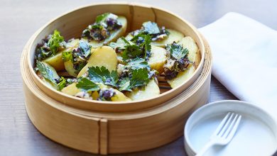 Pommes de terre de primeur à la vapeur d’algues, condiment marin