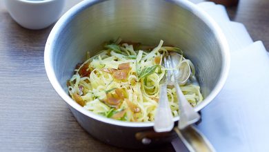 Spaghettis de pommes de terre de primeur à la poutargue