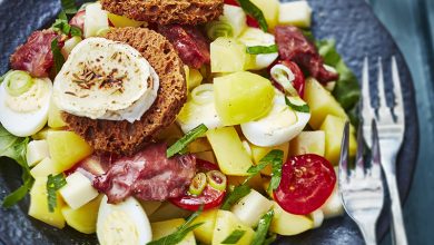 Salade de pommes de terre primeurs aux gésiers et fromages
