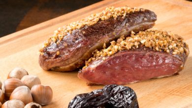 Magret de canard au carré, Pruneaux d’Agen et noisette du Lot & Garonne