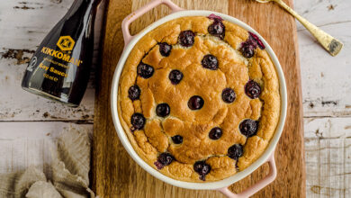 Pudding à l’avoine avec myrtilles et caramel aux dattes