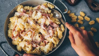 Radiatori à la crème de Beaufort, jambon et huile de truffe