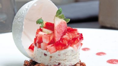 Tartare de fraises au poivre, nougat glacé et cacahuètes