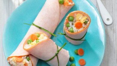 Rouleaux « surprises » aux filets de dinde, riz et petits légumes