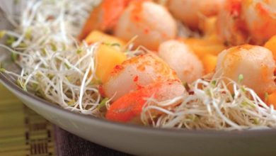 Pousses Germées aux Saint Jacques, Beurre de Corail