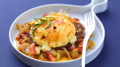 Saint-Marcellin rôti au sésame et sa compotée d’endives et petits lardons