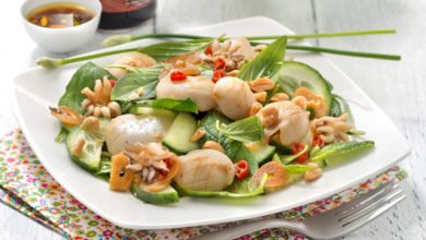 Salade calamars grillés, sauce soja et basilic thaï