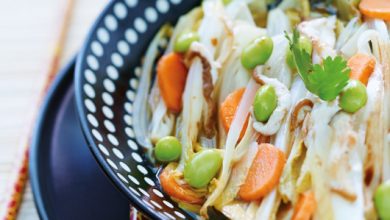 Wok d’endives, haricots mungo, shiitakés, sauce soja