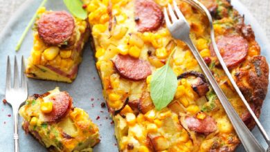 Tortilla de maïs, pommes de terre et saucisse fumée