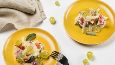 Fondue d’oignons doux aux raisins, figues, Tulbaghia et sauge