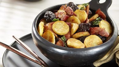 Galettes au blé noir, œuf poché et pommes de terre sautées