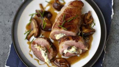 Magret de canard farci au Bresse Bleu et shiitakés caramélisés