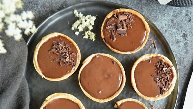 Tartelettes au Liégeois chocolat noir, Chantilly et tuile dentelle chocolat