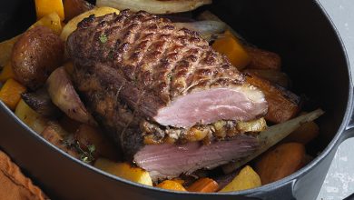 Rôtis de « Tendre Magret » de canard Montfort, farcis aux champignons et aux abricots secs