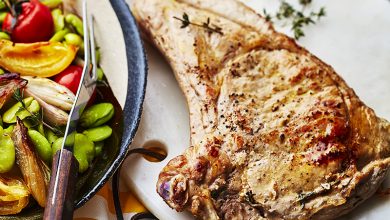 Côtes de veau poêlées, fèves aux échalotes, tomates et citrons confits