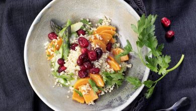 Semoule aux US Cranberries, aux asperges et aux patates douces