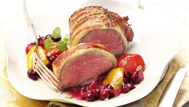 Filet de bœuf en robe de choux et pancetta avec une piperade aux US Cranberries