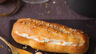 Éclair au saumon fumé, mesclun à l’huile de noix