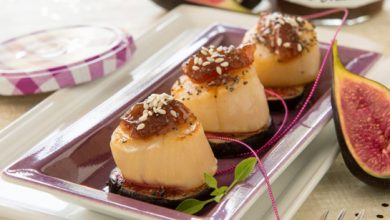 Noix de Saint-Jacques déglacées au coulis de Fruitée Intense Figue Bonne Maman® et vinaigre balsamique