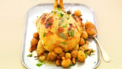 Poulet farci au beurre d’herbes et pommes grenaille Beurre bio aux cristaux de sel de mer