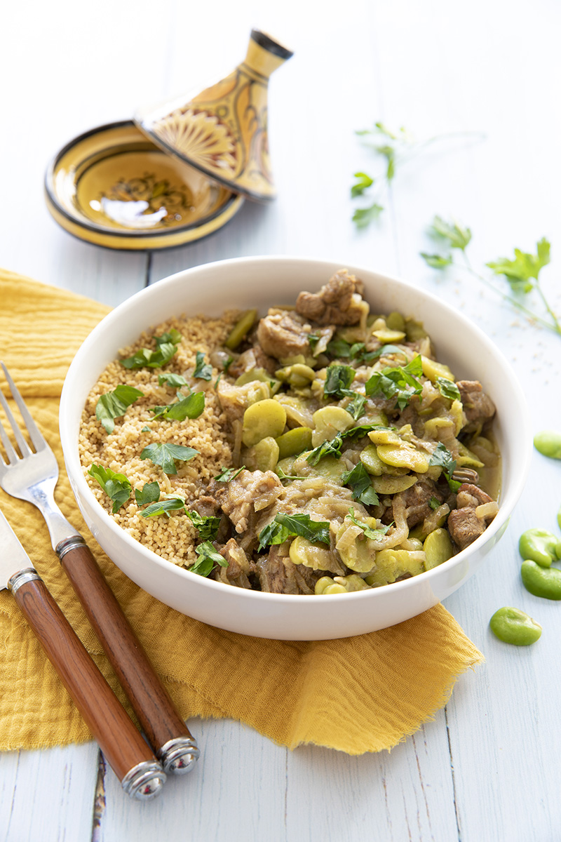 Servez le tajine accompagné de semoule et saupoudrez de persil ciselé.