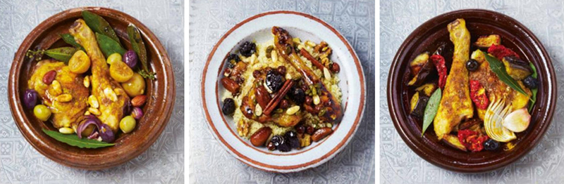 35 recettes gourmandes : Tajine de pintade au chou rouge et au miel, Tajine de cailles aux épices, Tajine de canard aux figues, Tagine d’agneau, fèves et potiron à la cannelle, Tagine de poissons bleus, Tagine d’abricots, dattes, pistaches et amandes…