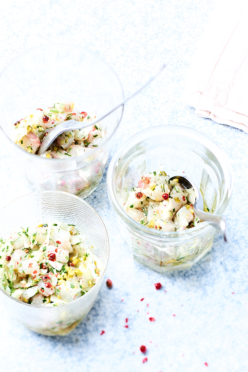 Astuce du chef : Pour une variante utilisez de l’huile de noix avec quelques noix concassées et servez le tartare avec une salade d’endives.