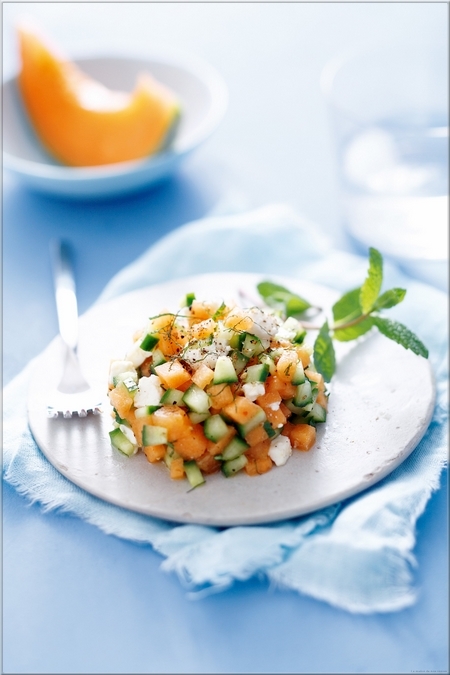 Tartare de Melon Charentais Jaune, Feta, Concombre et Menthe