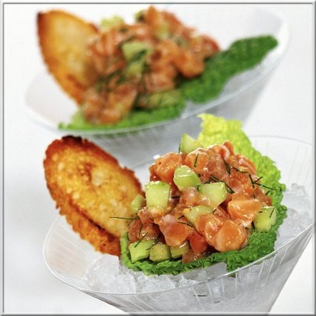 1- Coupez le Saumon de Norvège en tout petits dés.
