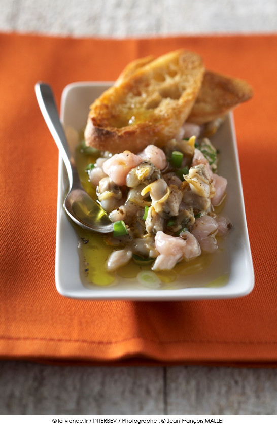Servir le tartare de veau aux coques avec des toasts de pain de campagne.