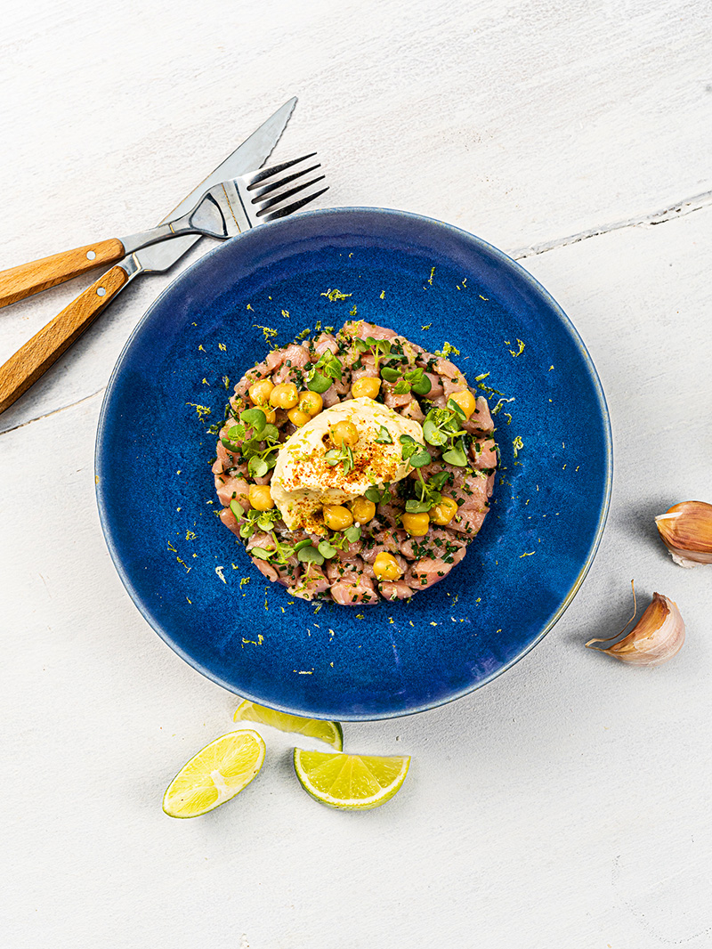 Tartare de veau, houmous léger
