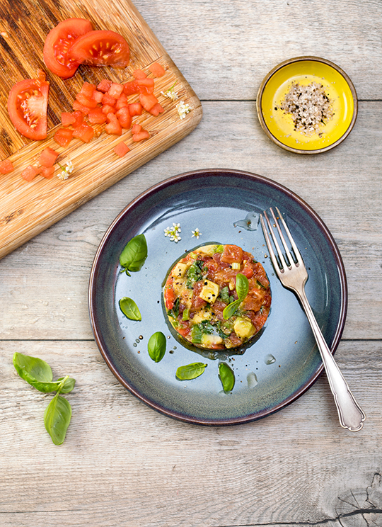 Tartare fondant de cœur de tomates et avocat