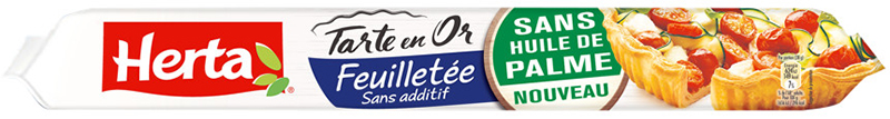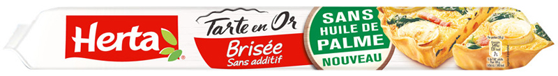Aujourd’hui, HERTA® va encore plus loin, enrichissant sa gamme TARTE EN OR® de deux références sans huile de palme : TARTE EN OR® Feuilletée Sans Huile de Palme et TARTE EN OR® Brisée Sans Huile de Palme. Des alternatives qui répondent aux attentes des consommateurs en quête de liste d’ingrédients simples et qui sont évidemment synonymes de bon goût au quotidien.