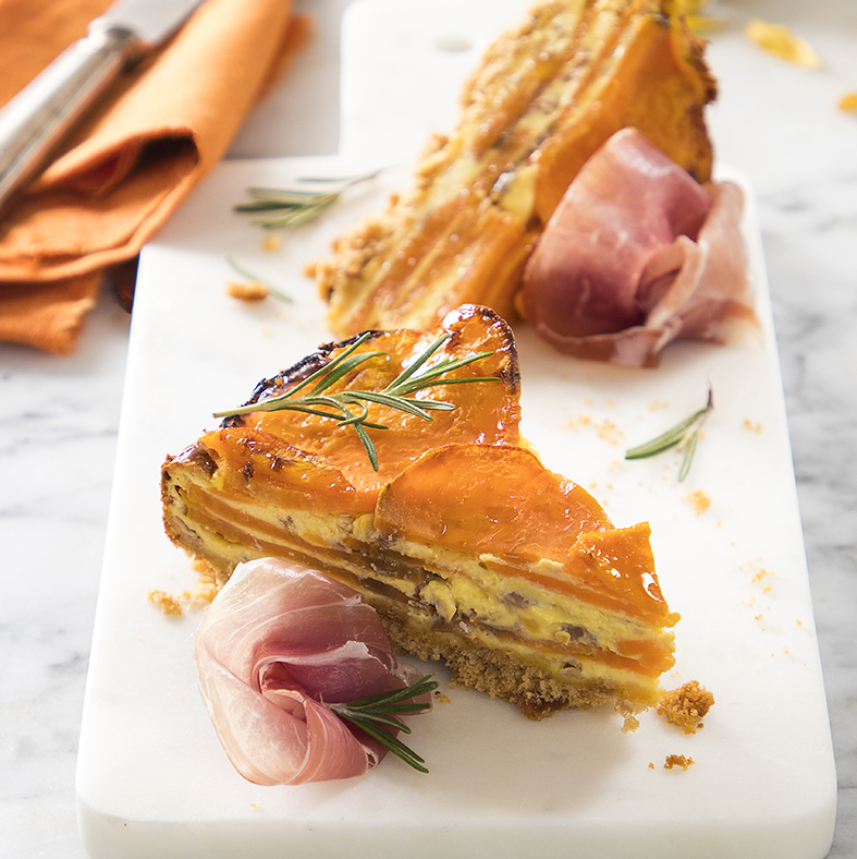 Retirer du four et au bout de 15 à 20 minutes, démouler dans une assiette et décorer le dessus avec les tranches de Jambon de Parme restantes ainsi que le romarin.
